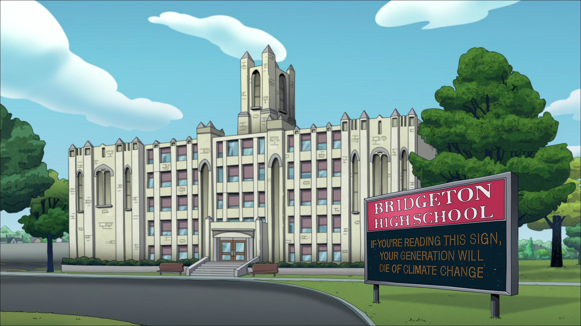 Bridgeton High School is the high school of the Bridgeton district in Westchester County, New York. Starting with the Season 7 finale, "A Finger in Time", it is where the main cast (sans Nick Birch) go to and serves as the main setting of the series.